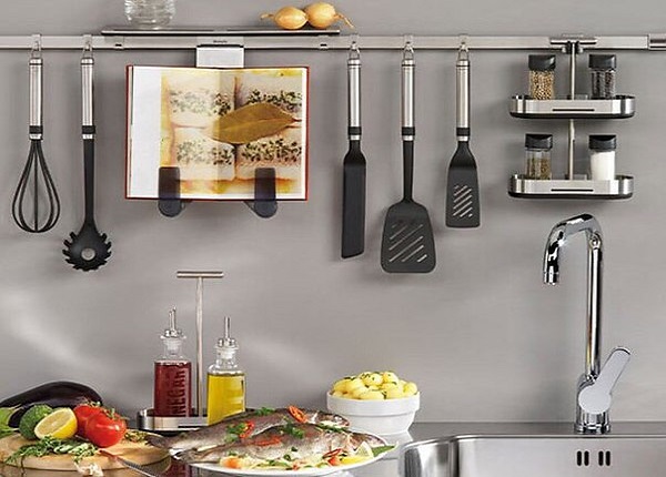 Ce système est une structure tubulaire métallique qui longe le tablier de la cuisine. Sur celui-ci se trouvent des attaches en forme de crochets, sur lesquelles sont suspendues des étagères et divers accessoires de cuisine.