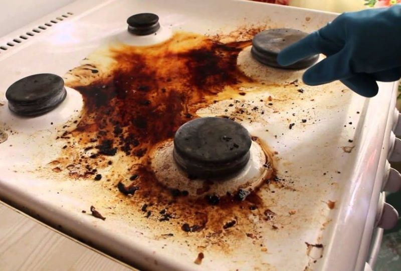 La conception de la table de cuisson est telle que la plupart des restes de nourriture qui y restent restent au-dessus de la tuile. Seule sa surface supérieure et le gril sont sales, sur lesquels sont placés des pots et des casseroles. Cependant, même une petite partie de cette graisse pénètre toujours dans les trous du brûleur et en dessous dans le canal d'alimentation en gaz. En conséquence, à un moment donné, le carburant bleu cesse simplement de couler pour la combustion.