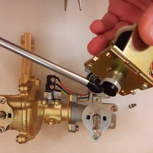 La conception de la soupape à gaz est assez simple - elle est réalisée selon le principe d'un appareil de traction électromagnétique, qui sont utilisés dans le cadre d'une grande variété d'appareils et d'appareils. Si vous démontez ce composant du circuit de l'unité de commande, pour lequel il suffit de dévisser quelques vis, la partie de la valve apparaîtra sous les yeux du maître, qui est montée sur une tige métallique à ressort.