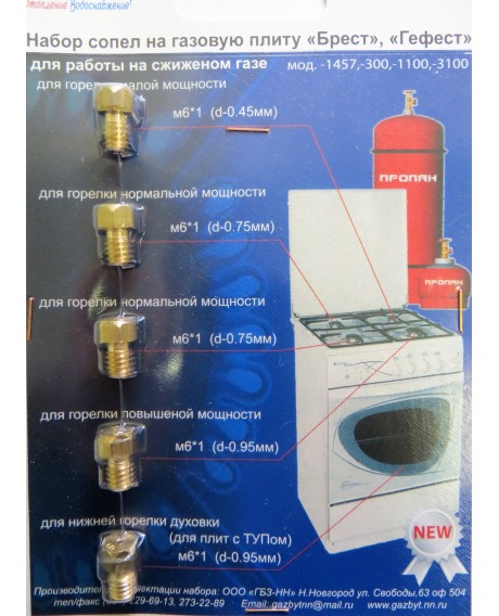 Éviter tous ces problèmes est assez facile. Il est nécessaire de choisir les bonnes buses pour la cuisinière à gaz lors du changement des conditions de fonctionnement et de la conversion pour le gaz en bouteille. Il convient de garder à l'esprit qu'en raison de la différence de pression du carburant entrant, le diamètre des trous dans les buses (jets) sera également différent.