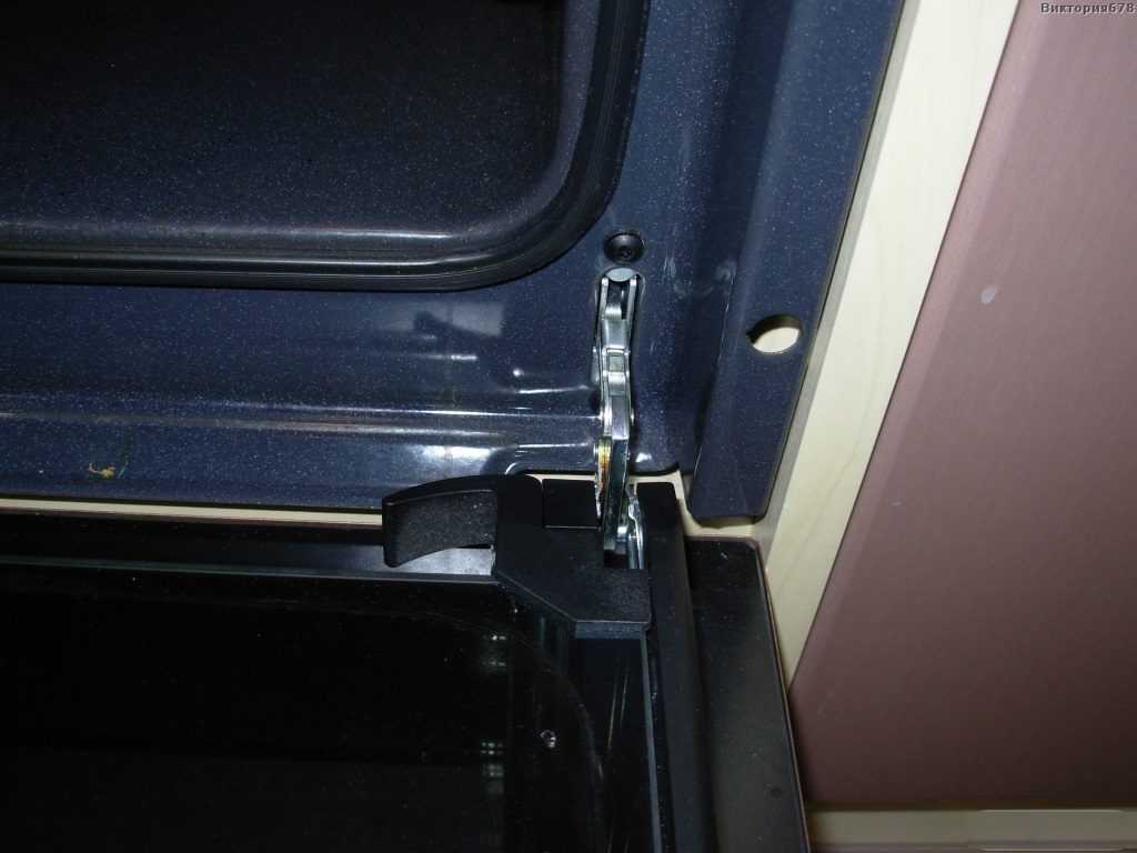 Inspectez soigneusement les supports de la cuisinière à gaz et évaluez le degré de leur déformation, ce n'est possible qu'après le démontage complet de la porte. Pour ce faire, vous devez ouvrir la porte et plier les charnières des deux côtés, puis la fermer soigneusement jusqu'à ce qu'elle s'arrête. Ensuite, vous devez tirer lentement la porte vers vous, tout en la déplaçant vers le haut, et la déconnecter du poêle.
