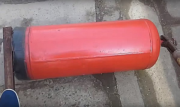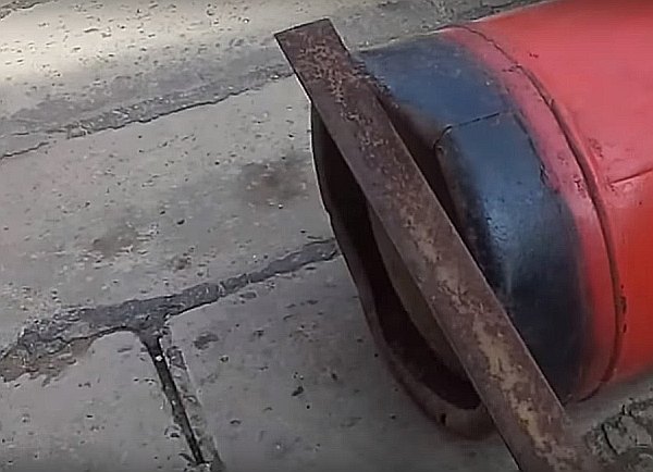 Cette méthode est assez dangereuse, elle ne doit donc être utilisée que par un soudeur professionnel avec le plus grand soin. La chaussure est saisie à deux endroits de sorte qu'après avoir dévissé la valve, il était facile de déchirer le récipient de la base.