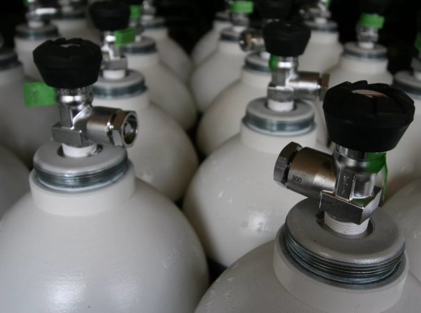 - Oxygène. Les bouteilles sont peintes en bleu et sont destinées au stockage d'oxygène, d'argon, d'hydrogène, d'azote, de dioxyde de carbone et d'autres gaz inertes.