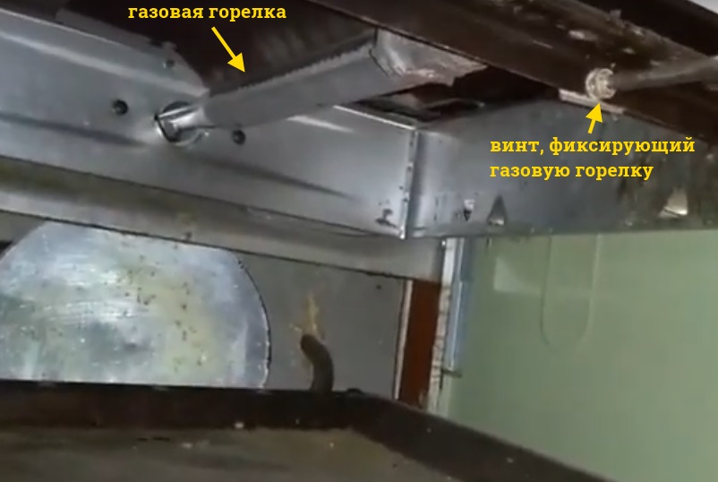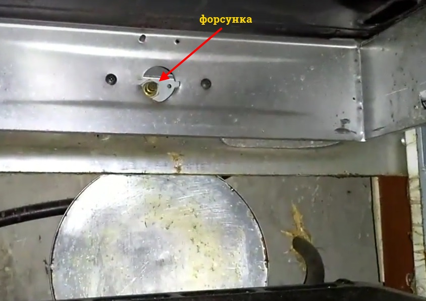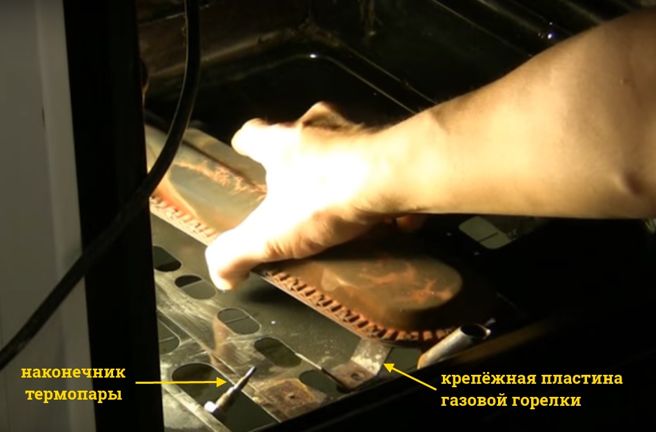 Pour accéder à la buse des brûleurs supérieurs, retirez la porte, dévissez et retirez la grille qui recouvre le brûleur, dévissez la vis qui fixe le brûleur au châssis. Tirant le brûleur vers vous, il est soigneusement retiré du four, après quoi la buse devient visible. Sur certains modèles, l'embout doit être retiré pour retirer le brûleur. thermocouples.