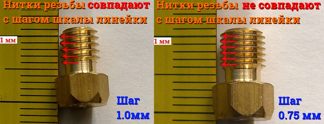 Jusqu'en 2009, des buses pour plaques étaient produites avec un pas de filetage de 1 mm. Dans la plupart des nouvelles plaques fabriquées depuis 2009, des buses avec un filetage de 0,75 mm sont installées. Pour déterminer la taille, il suffit de fixer une règle avec des divisions millimétriques clairement visibles sur le fil.