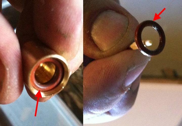 Étape 7. Après avoir dévissé l'ancienne buse, remplacez-la par une nouvelle en lubrifiant le filetage avec de la graisse graphite. La bague d'étanchéité est également remplacée, ce qui est pratique à faire avec une allumette. Utilisez une clé 7 pour serrer.
