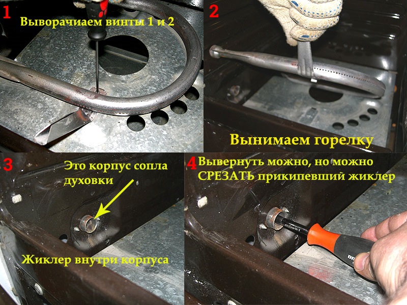 Ensuite, nous considérons un briefing détaillé sur le remplacement des buses sur le poêle, ainsi que le four.