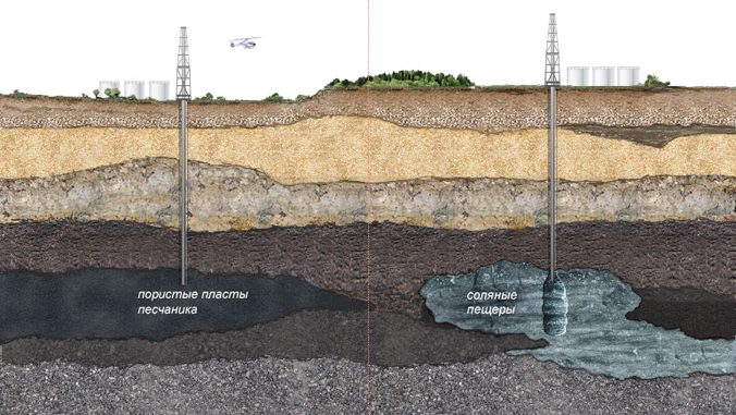 Il n'y a que 2 façons populaires de stocker le gaz sous terre. À savoir, dans des couches poreuses perméables et des cavités lavées dans des dépôts de sel. La première option est utilisée lorsque vous devez créer un grand référentiel, la seconde - uniquement pour résoudre les problèmes locaux