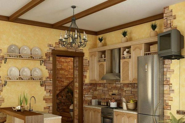 - Esthétique. En plus de toutes les exigences ci-dessus, le matériau des murs de la cuisine doit avoir une apparence organique à l'intérieur, car la cuisine est un endroit où chaque femme au foyer passe beaucoup de temps. Vous devez également prendre soin de masquage des tuyaux de gaz.
