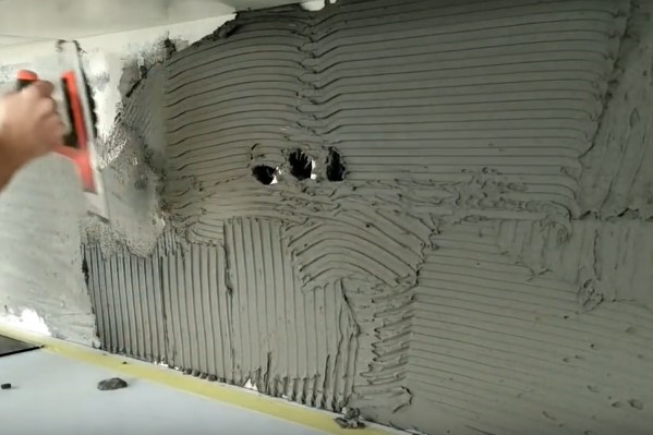 Une fois que toutes les tuiles ont été posées, il reste à attendre que l'adhésif ait séché, puis retirer les croix et jointoyer les joints avec une spatule en caoutchouc.