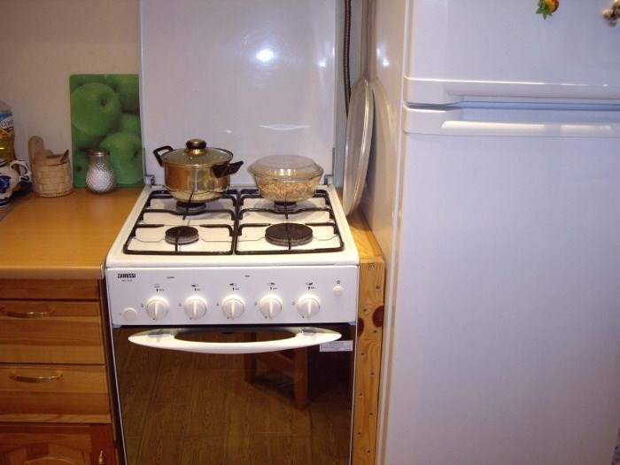 N'oubliez pas non plus qu'à côté de la cuisinière à gaz, il est extrêmement indésirable de placer un réfrigérateur. Si un tel voisinage est inévitable, alors il vaut la peine de poser une partition résistante à la chaleur entre les appareils.