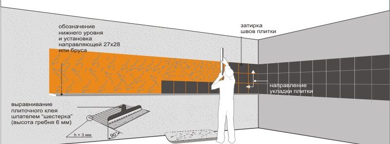 De plus, il peut être utile: un cordon, une règle et un crayon, un maillet en caoutchouc, des croix pour monter des carreaux, du coulis et, directement, l'adhésif lui-même.