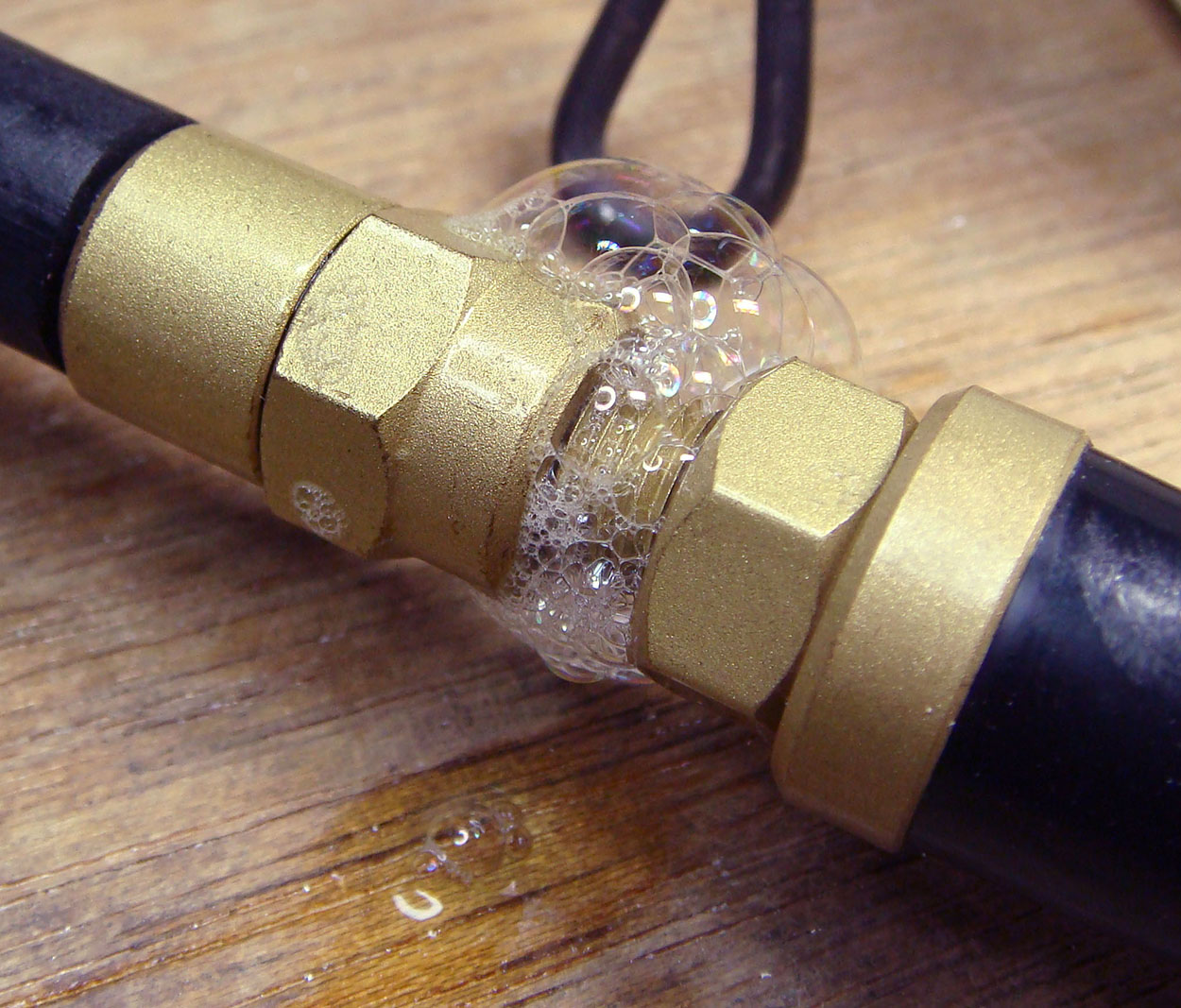 Pour confirmer la présence d'un dysfonctionnement et identifier la zone à problème, une inspection visuelle des tuyaux est effectuée à l'aide d'une solution savonneuse pour vérifier les fuites de gaz.