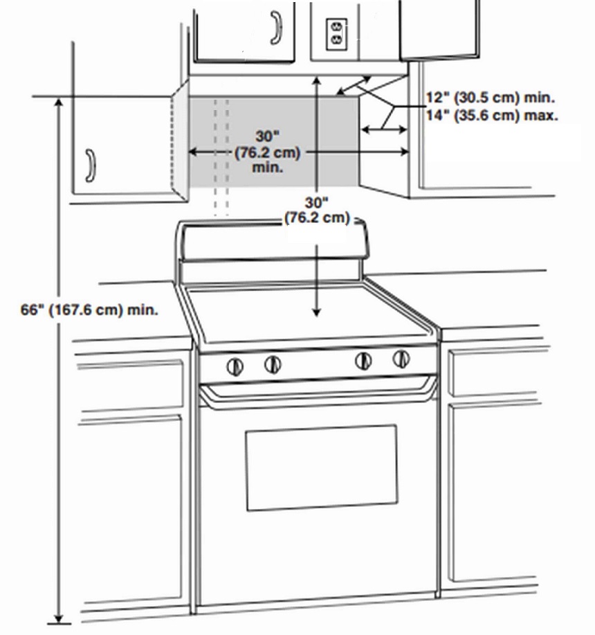 Installation d'une hotte micro-ondes sur le poêle.