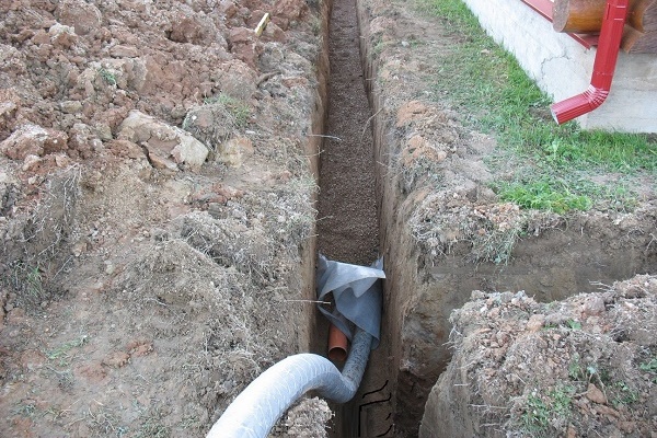 Dans les zones à pente naturelle, le pipeline est posé en fonction du canal que l'eau a fait. Pour les zones planes, la pente devra être effectuée de façon indépendante, ce qui donnera au fond de la tranchée un certain relief. L'eau s'écoulera bien si la pente du pipeline est de 1 à 3 cm par mètre linéaire.