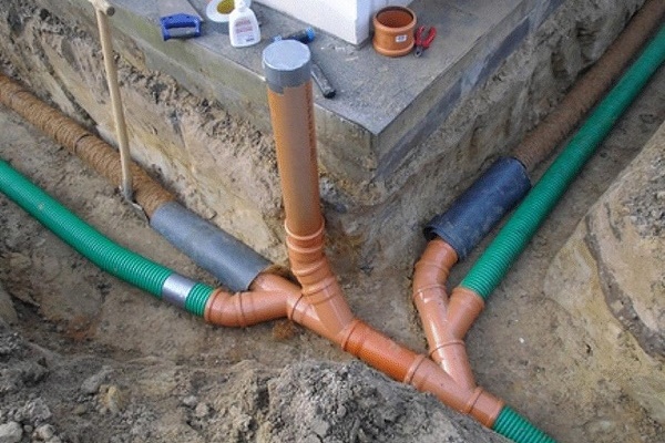 Ici, la règle principale est que le pipeline doit aller un demi-mètre plus profondément que le fond de la fondation. Pour une bonne sortie d'eau, un certain pente du pipeline dans le sens de la maison.