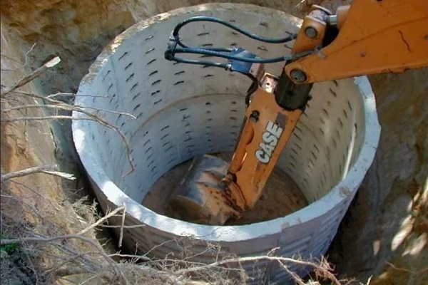 Le puits le plus fiable est le béton. Cependant, l'installation manuelle d'anneaux en béton n'est pas toujours possible, vous devrez donc recourir à l'aide de matériel de levage. De plus, le coût élevé et la fragilité sont des inconvénients des structures en béton.