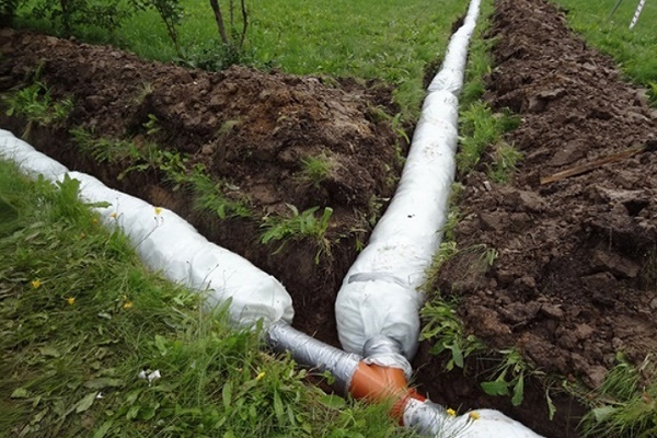 - Les tuyaux sont recouverts de gravier ou de gravier de roches sédimentaires jusqu'à une hauteur de 30 à 40 cm, puis de sable grossier ou graveleux à 30 cm.