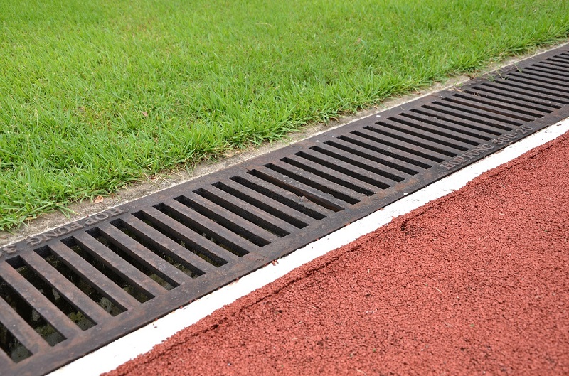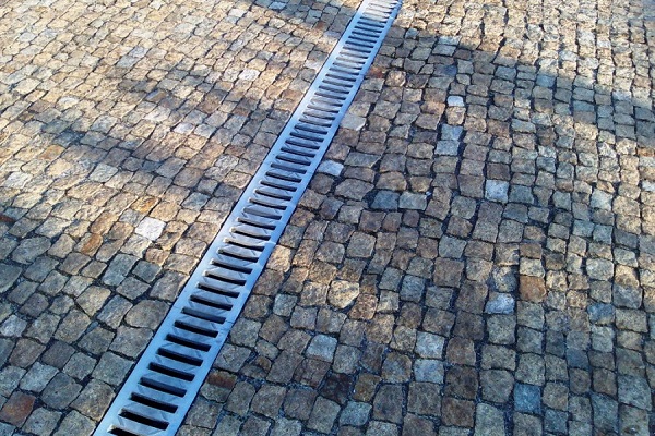 Un système de drainage linéaire est raccordé à un système d'égout commun par des bacs à sable. Il est également important de prévoir un dispositif de drainage ponctuel aux endroits où l'eau s'écoule du tuyau.