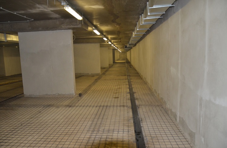 Le système de drainage linéaire se compose d'entrées d'eaux pluviales, de grilles de protection, de conteneurs de rétention de sable (bacs à sable) et d'autres éléments structurels. Le système monté est raccordé à l'égout.