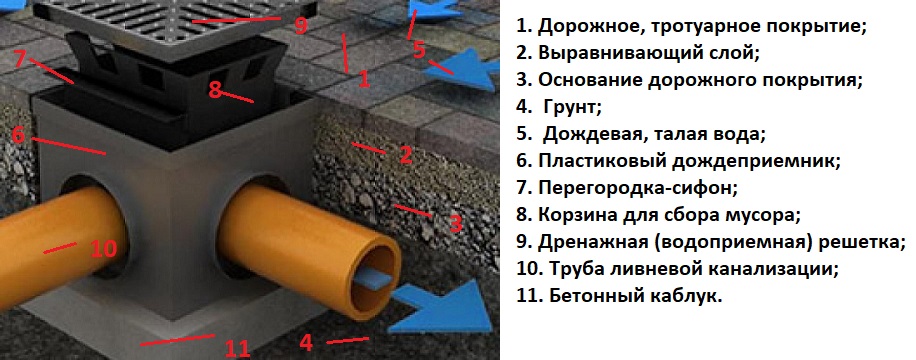 Le problème de l'élimination de la pluie et de la fonte des eaux, ainsi que des drains de l'arrosage et du lavage des rues, est tout à fait pertinent dans une ville moderne. Pour le résoudre, équipez un système de drainage de surface - un ensemble de plateaux, de bacs à sable, de puits de drainage et d'autres éléments d'équipement technique assemblés en un seul système de drainage.