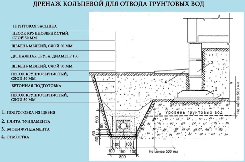 L'un des schémas les plus courants est le drainage des murs pour améliorer les caractéristiques de la protection d'étanchéité de la fondation et du sous-sol.