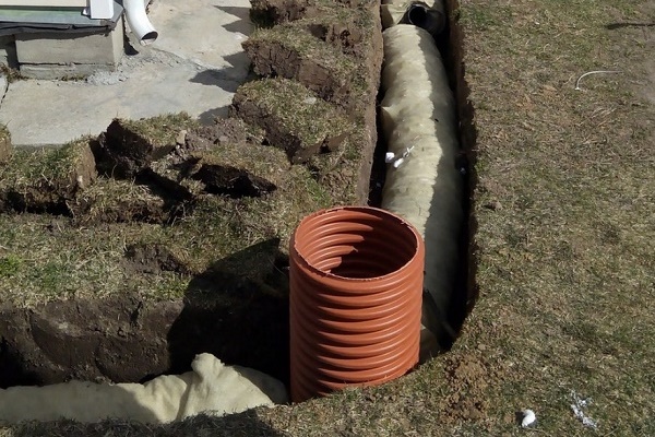 L'emplacement des tuyaux du système de drainage fermé est sélectionné en fonction du développement de la conception en tenant compte du biais vers le bassin versant. La profondeur des éléments du système dépend du niveau des eaux souterraines. Pour un appareil mural, des tranchées sont arrachées au niveau de la fondation de fondation, car son but est de renforcer les qualités d'imperméabilisation de la structure souterraine et la protection du sous-sol.