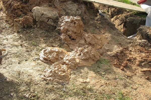 - mur (dans les sols argileux, en surface, le long du périmètre des bâtiments - maisons, bains, garages);