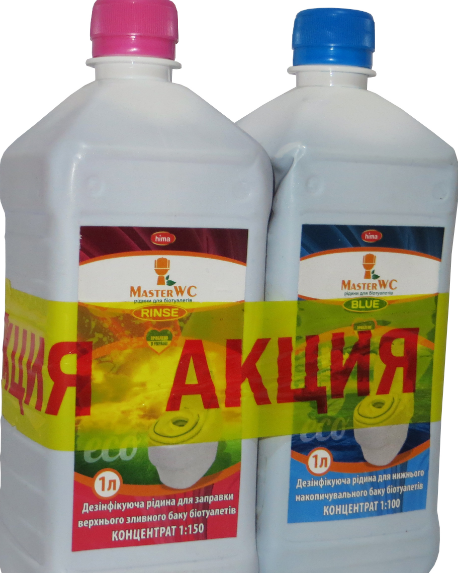 Si vous achetez la chimie originale du fabricant Thetford, cela revient assez cher: environ 40 $ pour deux bouteilles. Comme alternative, je peux offrir Master WC Rinse 1 litre + Blue 1 litre liquide pour seulement 6 $. Il n'y a pratiquement pas de différence de principe et de qualité d'action.