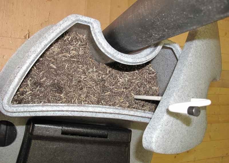 - un conteneur avec de la tourbe est situé sous la cabine et s'enlève facilement;