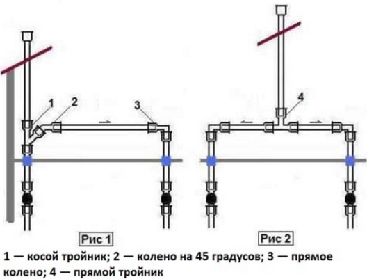 - La sortie d'une colonne montante équipée d'un tuyau de ventilateur doit être placée séparément. Selon le paragraphe 17.19 des codes du bâtiment, il ne peut pas être organisé avec une cheminée de poêle ou un système de ventilation.