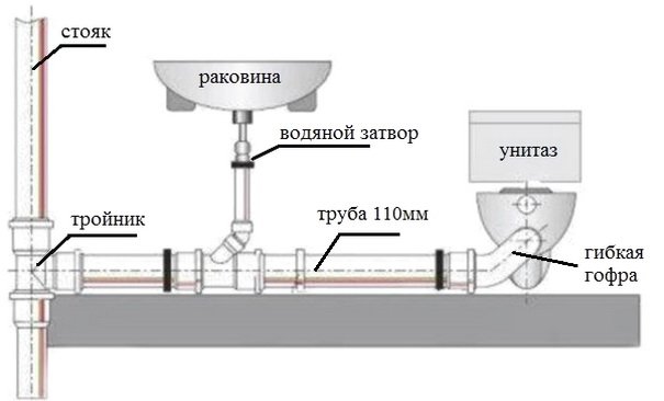 Exemple: si dans la cuisine il n'y a qu'un seul drain (évier), vous pouvez poser un tuyau de 35 mm à la salle de bain. Déjà avec un bain, le drain doit avoir un diamètre d'au moins 40 mm.