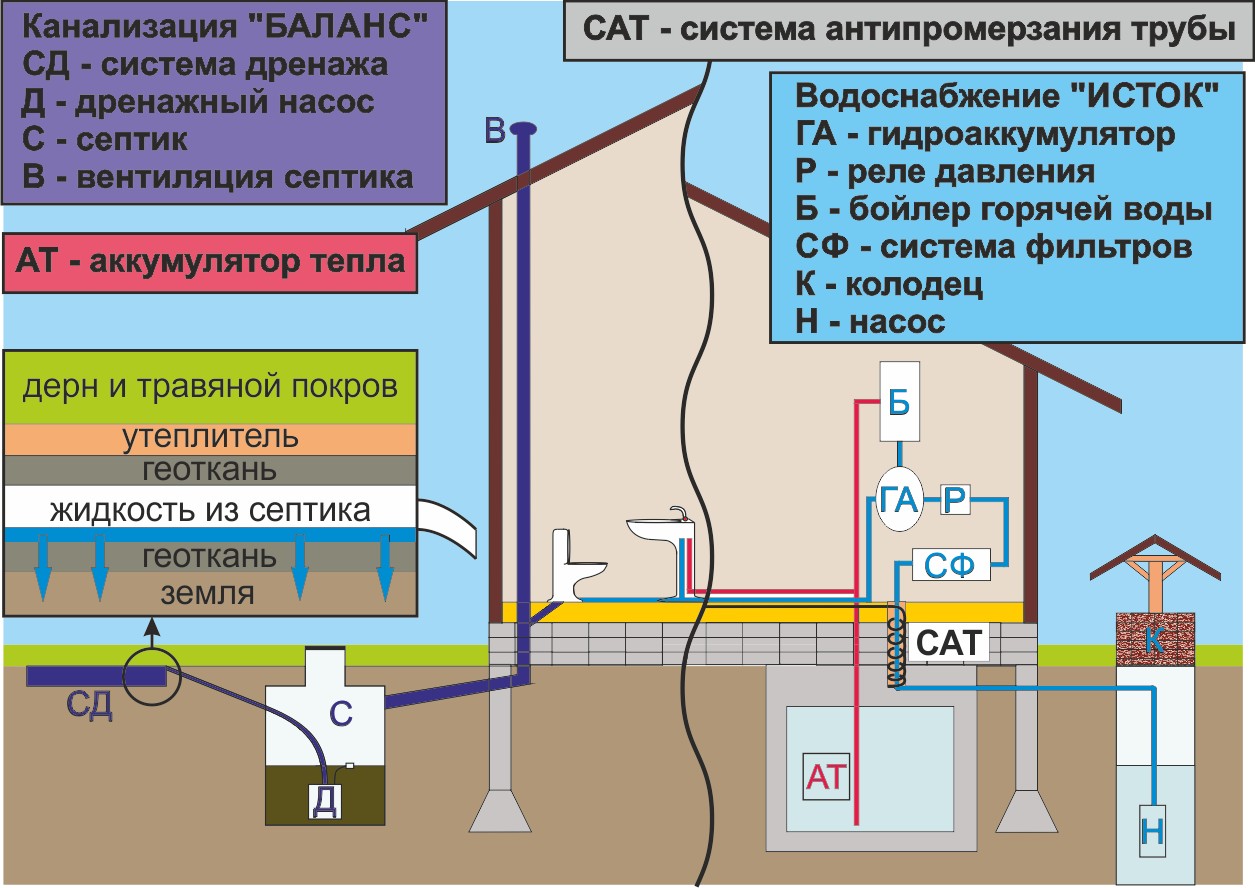 La particularité du système d'égouts autonome est que les principes de son agencement dépendent de chaque composant du système global.