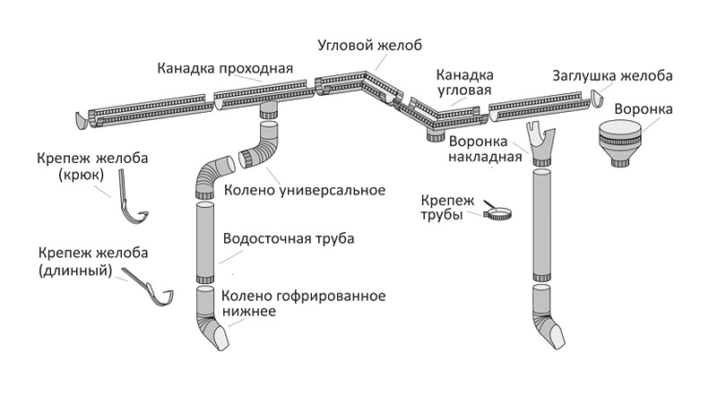 La conception des structures de drainage n'a pas changé au fil des ans - les principaux composants restent des gouttières et des contremarches sous la forme de tuyaux disposés verticalement.