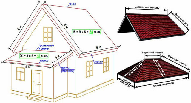 Sur papier, vous devez faire un croquis montrant toutes les pentes du toit. Sur le schéma, indiquez la longueur de la corniche pour chaque élément où sera placée la gouttière. L'étape suivante consiste à déterminer l'aire des pentes, le calcul est effectué selon les formules appropriées de figures géométriques.