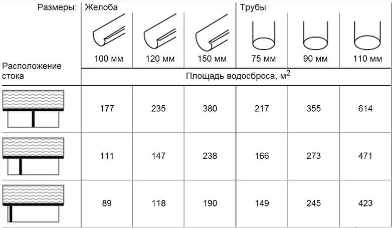Selon les normes, lors du calcul de la section transversale des bacs et des tuyaux de drainage, il est nécessaire de prendre en compte l'angle d'inclinaison du toit. Cependant, dans la pratique, ils repoussent souvent uniquement de la zone de la rampe.