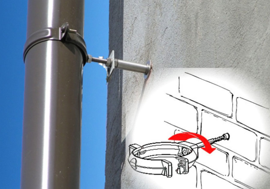 Porte-tuyaux - Ce sont des pinces pour fixer les tuyaux verticaux au mur. Les supports sont en plastique et en métal. Les fixations doivent résister à la charge sur la gouttière et être moins visibles.