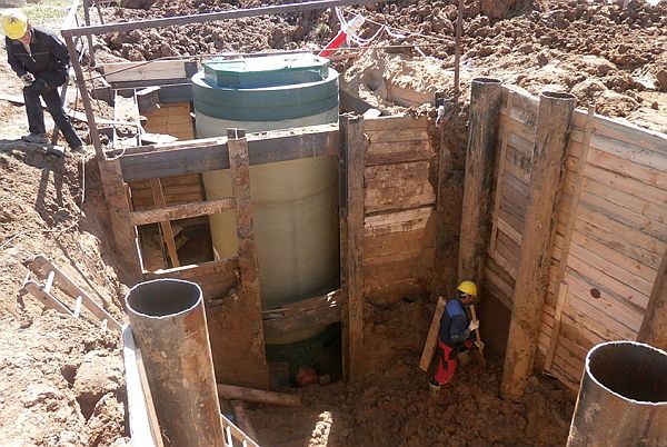 Étape # 1. Une sélection du site d'installation de la station de pompage est en cours. Les SNiP nécessitent de creuser un réservoir à au moins 20 m des murs d'un immeuble résidentiel. Si les niveaux géodésiques le permettent, il est conseillé de choisir un site plus haut afin que beaucoup d'eau souterraine ne s'accumule pas sous la station.