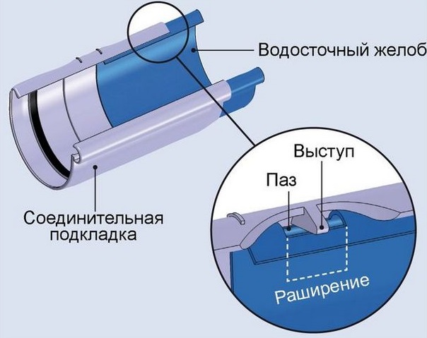 Pendant ce temps, le plastique a les propriétés de changements structurels dans des conditions de fluctuations de la température ambiante. Par conséquent, pour tous ceux qui décident de faire eux-mêmes une gouttière pour le toit d'une maison privée, ces propriétés du matériau doivent être prises en compte et appliquer la technique d'installation avec compensation de la dilatation thermique.