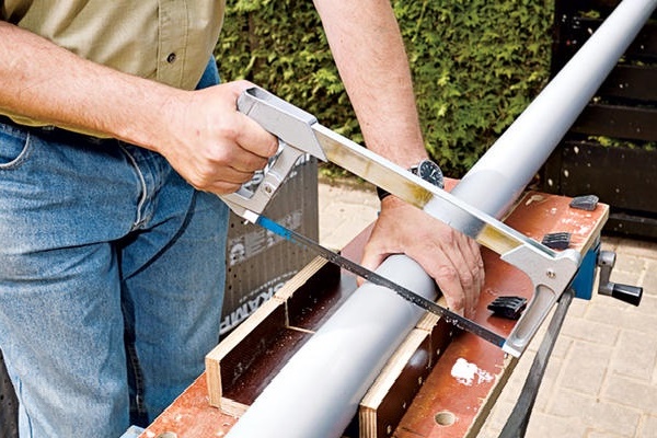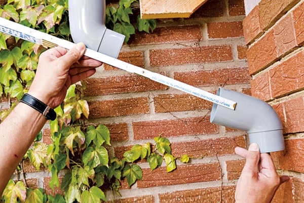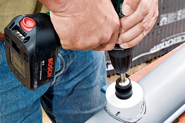 - Percez un trou dans le mur de la gouttière le long de la ligne marquée.