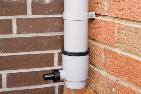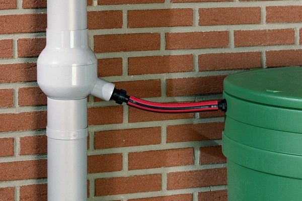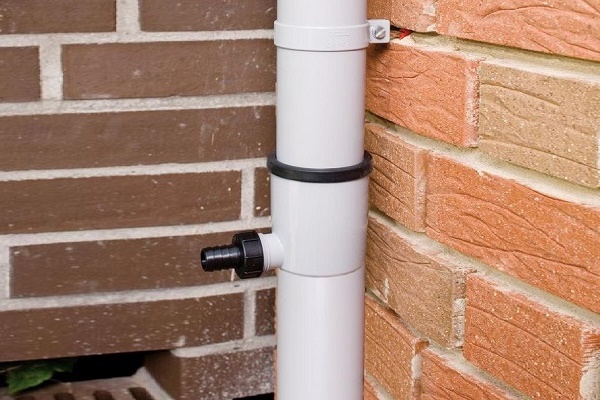 Pour recueillir l'eau de pluie dans un réservoir, un tuyau de drainage est installé sélecteur: