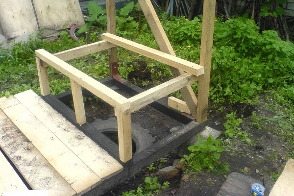 Le reste de la zone supérieure sera couvert par la conception des toilettes de la cabane, qui seront situées au-dessus du puisard. Avec cette option de construction, le plancher des toilettes est posé et attaché au coffrage, comme la structure principale.