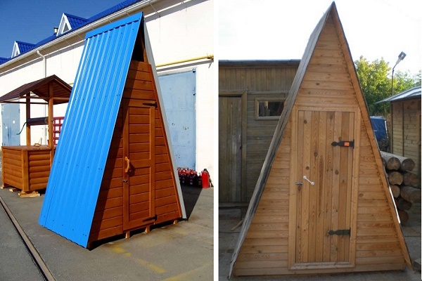 Bonjour Parmi les inconvénients de la «cabane» des toilettes de la rue, on peut noter la perte de surface utilisable, même si, en fait, elle est insignifiante et la complexité de l'installation, il est plus facile de construire une structure rectangulaire. Certains disent que c'est aussi une recherche de matériaux de longueur appropriée, mais je ne vois rien de compliqué dans la construction. Et, bien sûr, si vous n'êtes pas distingué par la taille miniature de votre corps, il peut être gênant pour vous d'être à l'intérieur en raison de la forme triangulaire.