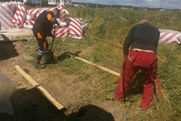 - Le long du périmètre de la base (1,2 x 1,0 m), faites un petit (100-150 mm) d'approfondissement dans le sol.