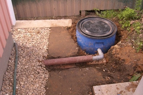 Mais le sol argileux ne permet pas à l'eau de bien passer, il nécessite donc l'installation supplémentaire d'un puisard avec un mécanisme de vidange. L'eau usée s'écoule dans un tuyau menant à un fossé ou à un puits filtrant.