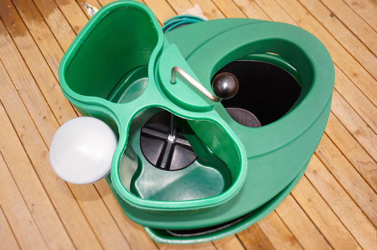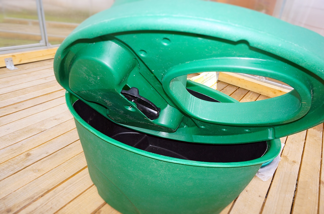 Sous le trou se trouve un conteneur pour les excréments. Il faut immédiatement le verser dans environ cinq centimètres de tourbe. Il est préférable d'avoir plusieurs réservoirs de stockage afin de pouvoir les changer au fur et à mesure qu'ils se remplissent.