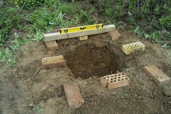 Pour commencer creuser un puisard. Sa taille minimale est de 1x1x2 mètres. La taille réelle doit correspondre aux dimensions de la partie aérienne du bâtiment. Au fur et à mesure que vous décrivez le travail effectué, il sera clair comment déterminer cette taille.