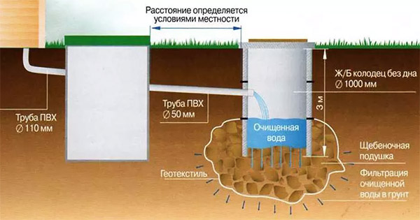 Si l'emplacement de la mini-station d'épuration a un niveau élevé d'occurrence d'eaux souterraines, ce qui peut provoquer un ralentissement du processus d'élimination de l'eau et même une inondation de la structure, envisagez d'installer une fosse septique qui draine les eaux usées vers les champs de drainage.