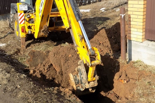 Au même stade tranchées pour tuyaux d'égout. Ils sont déposés en dessous du niveau de congélation des couches de sol, qui, pour les régions de latitudes moyennes, est d'environ 1,2 à 1,5 m.