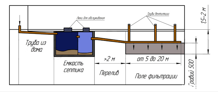 Toutes les fosses septiques peuvent être divisées en 2 types principaux, différents en principe d'action: